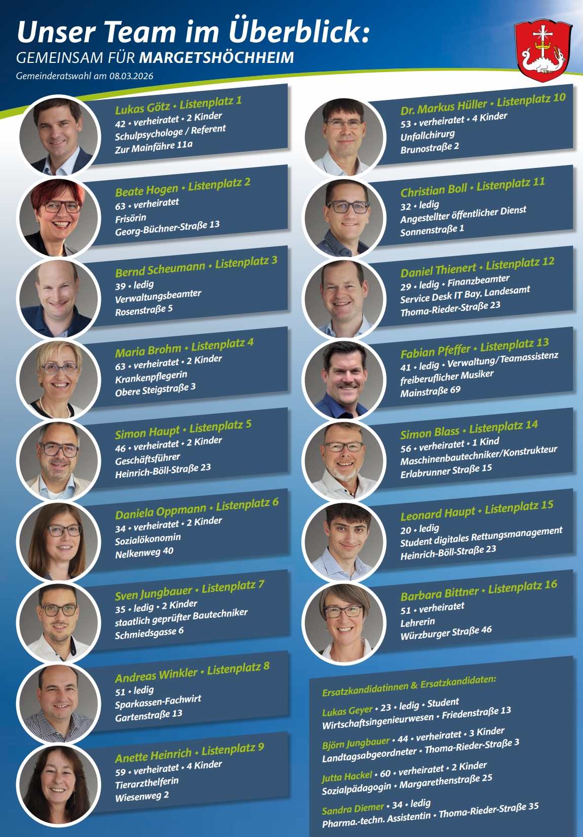 Folgende Personen gehen für uns bei der Gemeinderatswahl ins Rennen - hier geht´s zur Übersicht und zu unserem Quiz: UnserTeamKW2026