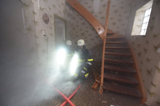 Dieses Gebäude hat den Vorteil, dass es aufgrund der schlechten Anfahrbarkeit und der verwinkelten Bauweise stellvertretend für viele Gebäude im dicht bebauten Altort steht. Angenommen wurde ein Brand im Inneren des Gebäudes, welcher mehreren Personen den Fluchtweg versperrte.
