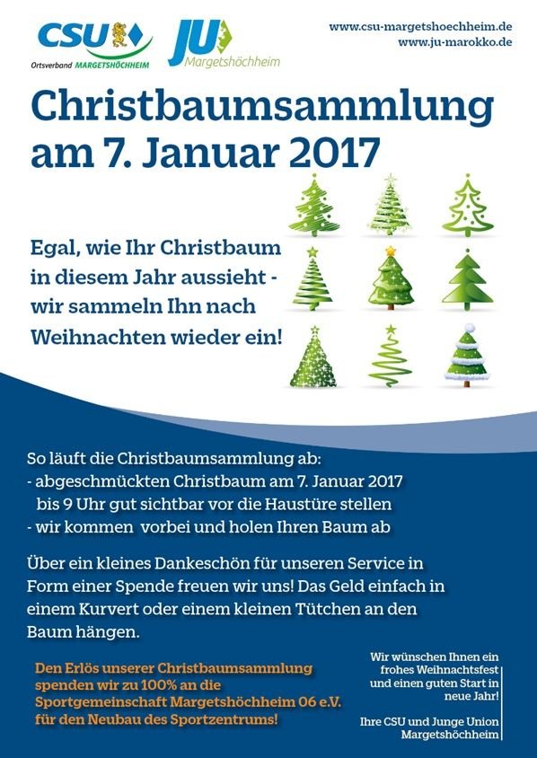 Bitte legen Sie Ihren Baum ab 9 Uhr gut sichtbar zur Abhlung an den Straßenrand.