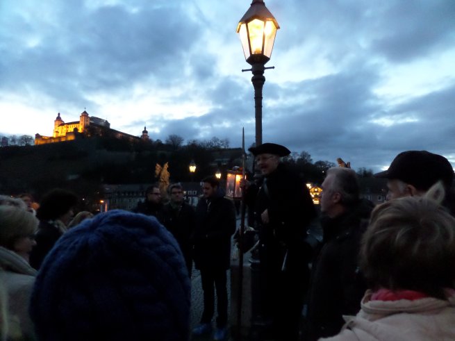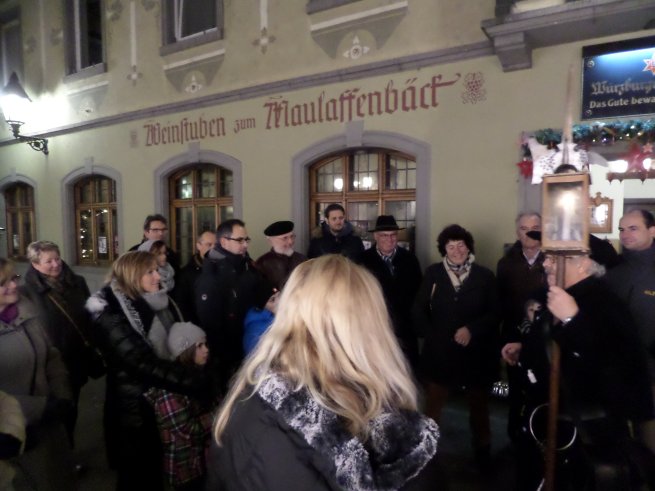 Das ist viel Arbeit und Mühe und für eine an Mitgliedern betrachtet eher kleinere Gruppierung im Margetshöchheimer Vereinsgeschehen eine besondere Herausforderung. Da ist es wichtig, das Engagement der Helferinnen und Helfern zu würdigen. So machte man sich gemeinsam nach Würzburg auf, um einer kurzweiligen Führung mit dem Würzburger Nachtwächter zu folgen und seinen Anektoden zu lauschen. Das mit dem Würzburger stimmt dabei aber nicht so, da es sich unserem Nachtwächter mit Josef Wolf um einen waschechten Margetshöchheimer handelt, der uns dankenswerter Weise mit viel Witz und Humor unterhielt.