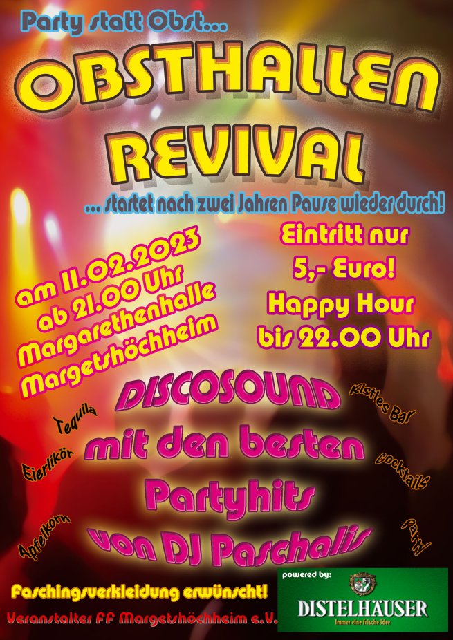 An diesem Wochenende findet die zweite und dritte Runde der Prunksitzungen statt. Und eine Woche später lädt die Feuerwehr - wir kommen der Bitte um Veröffentlichung gerne nach - zum Obsthallen-Revival ein.