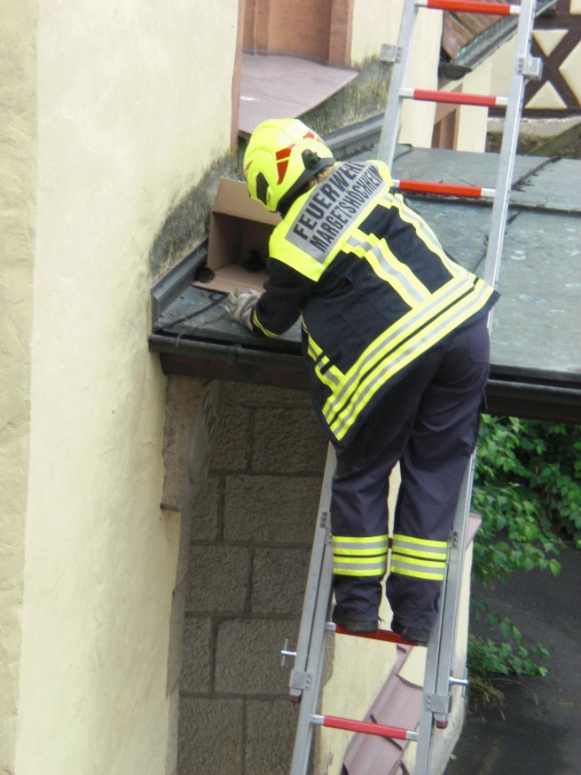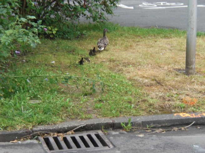 „Entenmutter“ und „Entenkinder“ sind nach der einstündigen Rettungsaktion wohlauf.