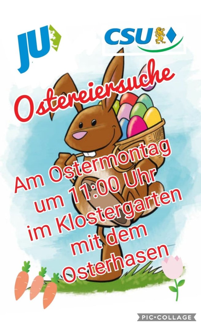 Am Ostermontag, 22.04.2019 lädt die Junge Union wieder herzlich alle Kinder und Familien zur Ostereiersuche in den Klostergarten um 11 Uhr ein.