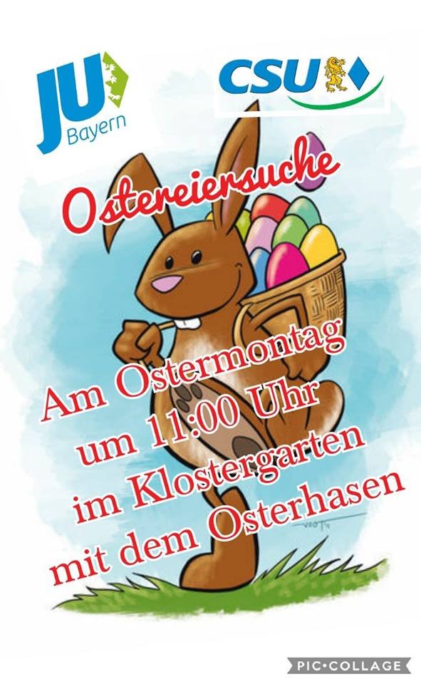 Alles Jahre wieder ... kommt der Osterhase nach Margetshöchheim. Am Ostermontag, 2. April, ist es um 11 Uhr im Klostergarten wieder so weit. Die junge Union lädt herzlich alle Kinder und Eltern zur Ostereiersuche ein.