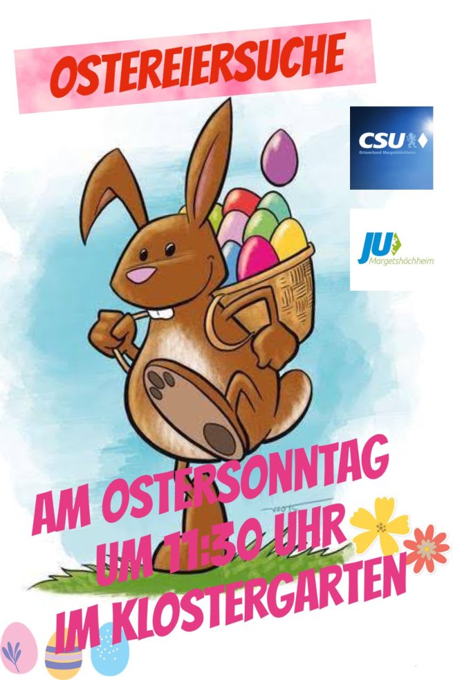 Auch wenn die Temperaturen sich eher wie Winter anfühlen: Junge Union und CSU laden wieder alle Kinder zur Ostereiersuche am Ostersonntag, 17.04.2022 ein. Diese beginnt um 11.30 Uhr im Klostergarten.
