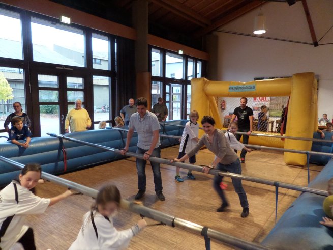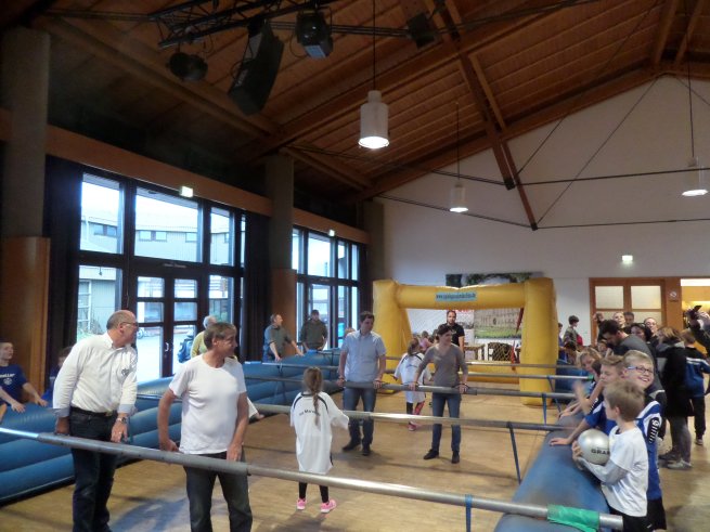 Schon wieder knapp verloren - trotz Vorsprung - hieß es am Ende für das Team des Gemeinderats, welches bei der landkreisweiten Lebendkickermeisterschaft des KiJuz zu einem Einlagespiel an den Start ging. Unter Kapitän Waldemar Brohm unterlag die Mannschaft wie im Vorjahr knapp mit 7-8 gegen das Juniorteam des KiJuz. Am Ende waren es trotz starken Teamgeistes im Gemeinderat zu viele einzelne Leichtsinnsfehler auf allen Positionen gewesen, so dass die Niederlage nicht mehr abgewendet werden konnte ;-). Vielleicht lag es aber auch am verletztungsbedingten Ausfall des 2. Bürgermeisters Peter Etthöfer, der dem Spiel nur von der Seitenlinie beiwohnen konnte.