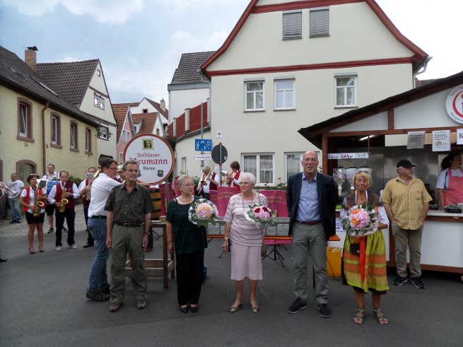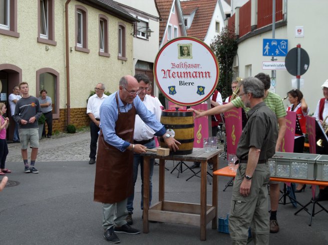 Musikalisch umrahmt durch den Musikverein eröffnete Bürgermeister Waldemar Brohm das 65. Margaretenfest. Begleitet wurde er von seinem Stellvertreter Peter Etthöfer, den drei Margaretli sowie den VertreterInnen des Gemeinderats und der Vereine. Gleich mit dem ersten Schlag war das von der Firma Bauriedel spendierte Bierfass angestochen - ein großes Kompliment an den Bürgermeiter. Da tut sich manch anderer Bürgermeister andernorts um ein Vielfaches schwerer.