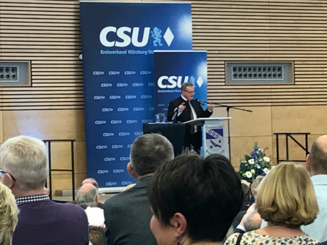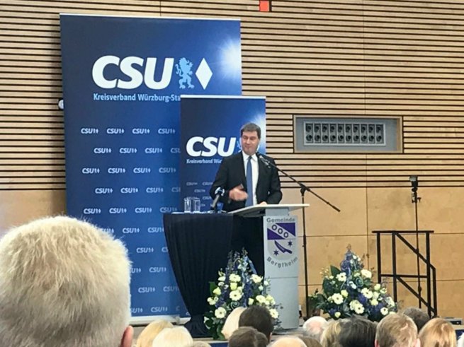 Der designierte bayerische Ministerpräsident Markus Söder war am vergangenen Sonntag Gast beim Neujahrsempfang des CSU-Kreisverbandes. Kein Wunder, dass fast 1000 Gäste nach Bergtheim gekommen waren. Söder berichtete von den Sondierungsgesprächen in Berlin, die ja auch für seinen Amtsbeginn entscheidend sind, will doch der amtierende Ministerpräsident Horst Seehofer nach Abschluss der Gespräche in Berlin sein Amt an Söder übergeben. Söder gab sich praxis- und volksnah und entschlossen, aber ebenso präsidial. Er machte deutlich, dass er bis zu den Landtagswahlen im Oktober diesen Jahres aber nicht nur etwas "präsidial den Grüß-August" machen wolle, sondern noch einige wichtige Punkte anstoßen möchte. Siehe auch: http://csu-margetshoechheim.de/neuigkeiten/geschlossenheit-in-der-csu-nuernberger-parteitag-im-nachklang