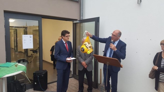 Bürgermeister Waldemar Brohm würdigte die ehrenamtlichen Helfer, die das wohl größte Projekt der Vereinsgeschichte mit so großem Engagement vorantrieben, und hob die finanzielle Unterstützung der Gemeinde hervor, welcher der Sport und die Gemeinschaft besonders am Herzen liege. So habe der Gemeinderat mit großer Geschlossenheit und großem Wohlwollen das Projekt unterstützt.