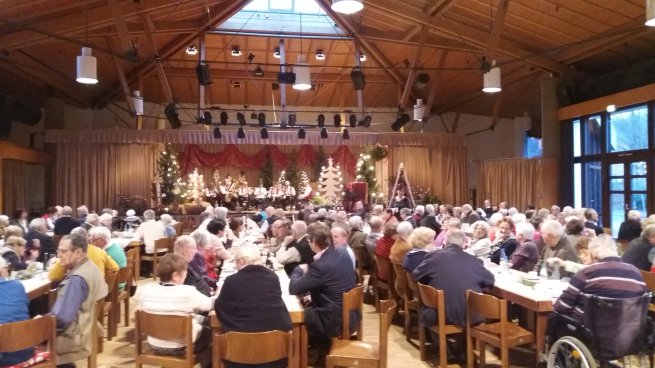 Die Margaretenhalle war, wie bereits seit Wochen für die zahlreichen Advents- und Weihnachtsveranstaltungen, reich mit Tannenwedeln, Lichtern, Kerzen und anderen weihnachtlichen Gegenständen geschmückt - ein willkommenes Ambiente für die über 200 Gäste, welche Bürgermeister Waldemar Brohm bei der Weihnachtsfeier der Gemeinde begrüßen durfte.