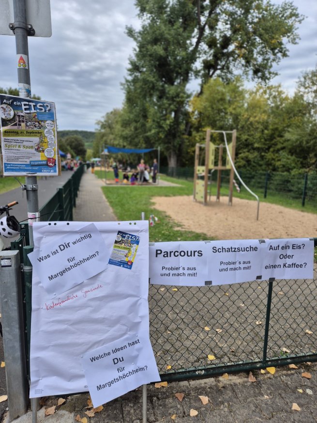 Ein schöner Nachmittag am alten Spielplatz: Das Wetter hatte noch gut mitgespielt, die Leute waren zahlreich, die Gespräche locker und angenehm, die Schatzsuche hingegen hart umkämpft, schöne Bilder gingen beim Wettbewerb ein, das Eis wurde bis auf die letzte Kugel aufgegessen und einige schöne Anregungen für Margetshöchheim gleich notiert.