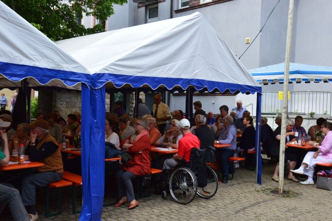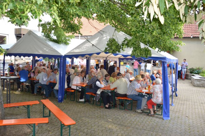 Gutes Wetter, interessante Unterhaltungen, leckeres Essen - für das leibliche Wohl war bestens gesorgt und der Rathaushof bunt und gut gefüllt. Dazu stimmungsvolle Musik und Unterhaltung für die Kleinen.